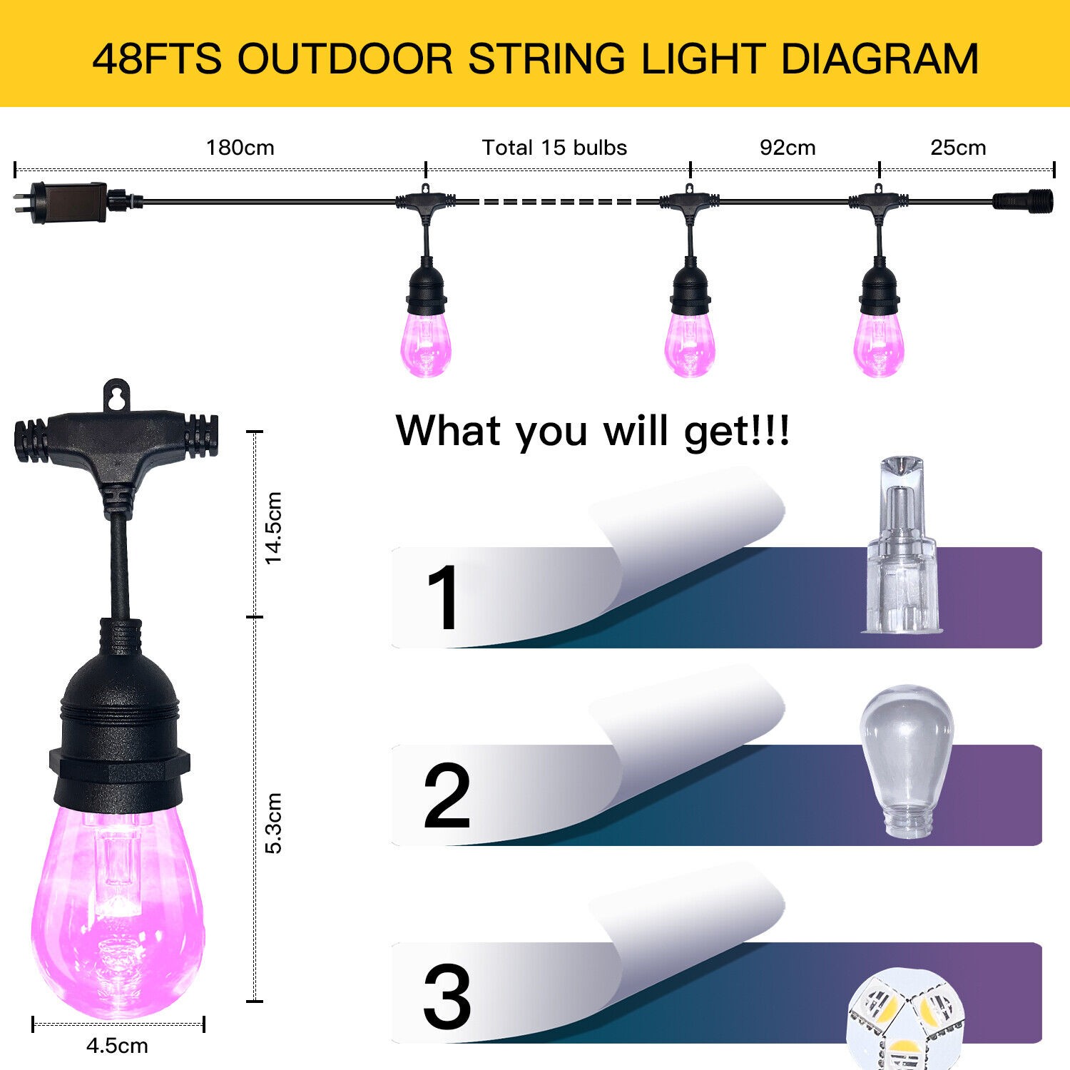 3)Length:45M 45 Bulbs