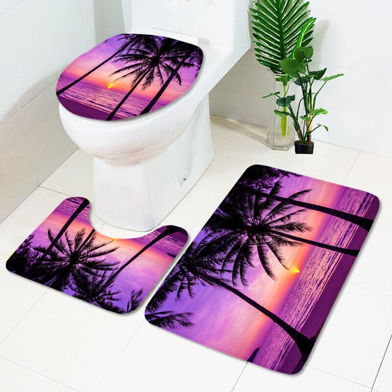 3D Beach Printed Waterproof Shower Curtain with Rug Toilet Cover Bath Mat Set/.-