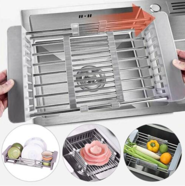 Adjustable Kitchen Dish Drying Sink Stainless Steel Rack Drain Strainer Basket
