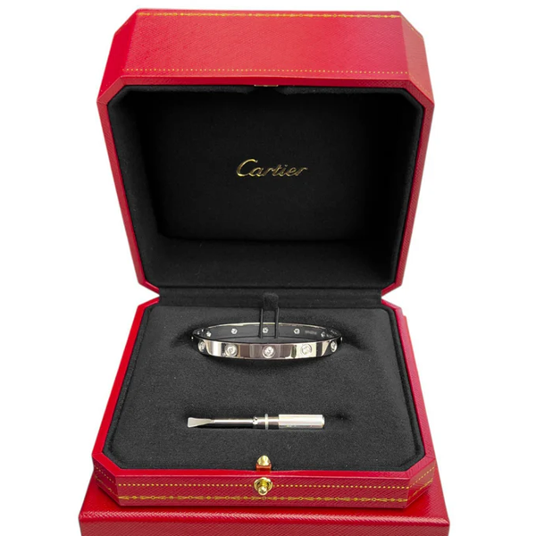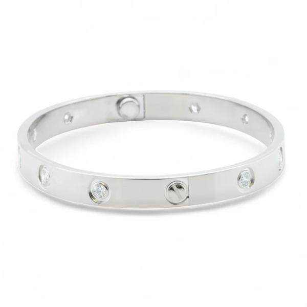 Cartier Love 18k White Gold 10 Diamond Bangle Bracelet Size 17 BAG + BOX + CERT SKU: 500998