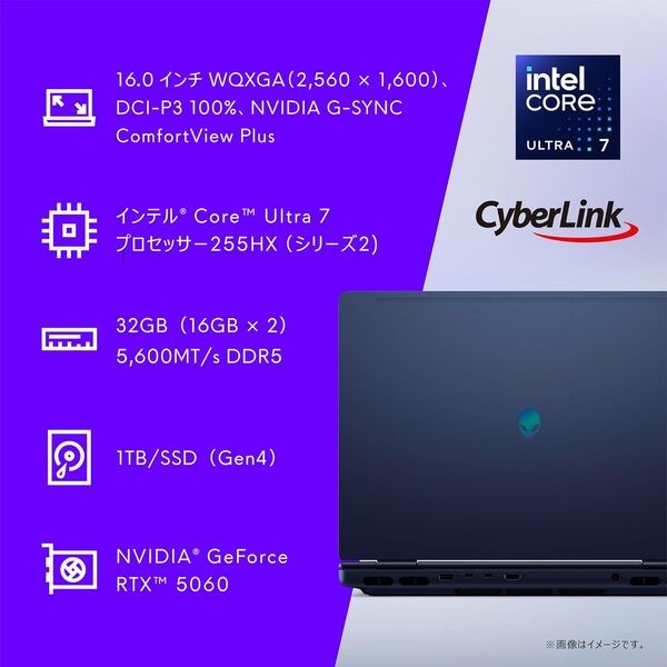 Dell ノートパソコン Alienware 16X Aurora AC16251 16インチ Intel®Core™Ultra 7 プロセッサー 255HX RTX 5060 メモリ32GB SSD1TB Windows 11 インターステラー インディゴ 翌営業日対応オンサイト出張修理サービス1年(HDD返却不要サービス) NAA76-FNA