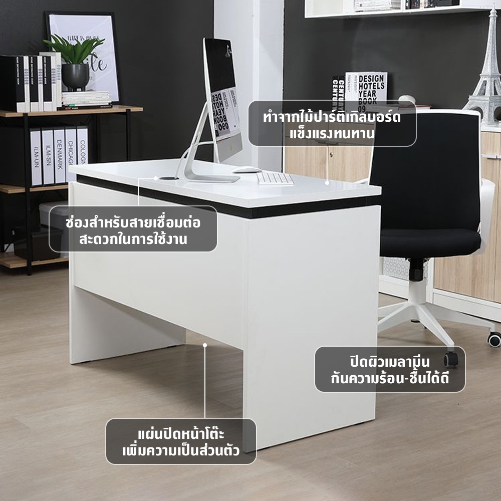 INDEX LIVING MALL โต๊ะทำงาน รุ่นไลน์นิโอ ขนาด 120 ซม. - สีขาว/ดำ