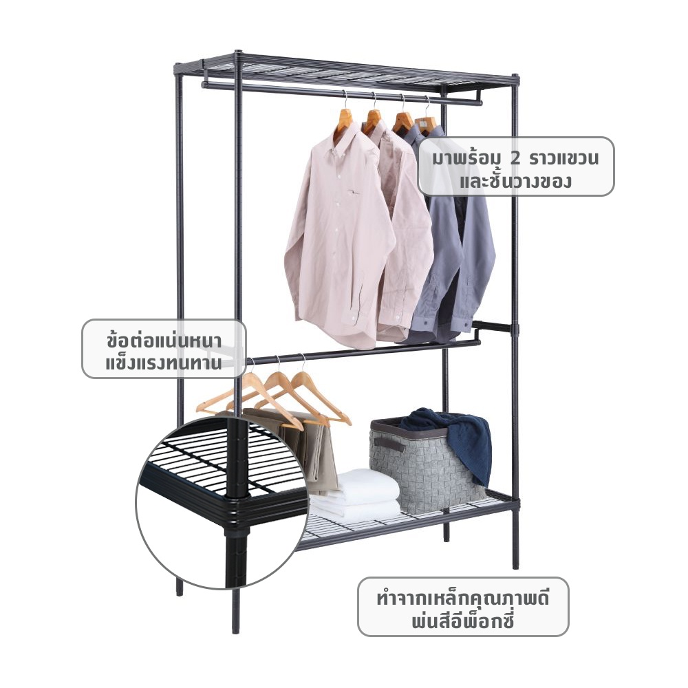 INDEX LIVING MALL โครงตู้เสื้อผ้า 2 ราว รุ่นไวร์เน็ท ขนาด 120 ซม. (เลือกสีได้)