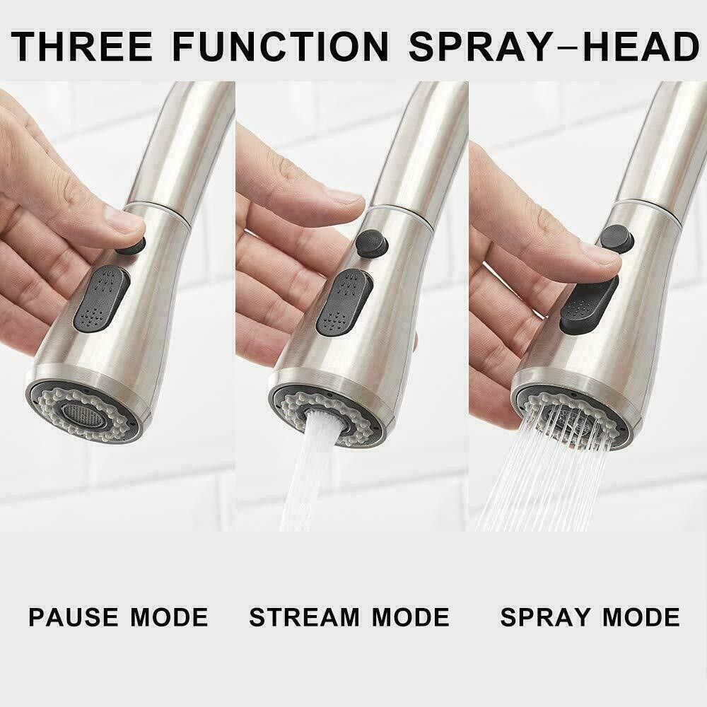Kitchen Sink Faucet Pull Down Single Handle Swivel Sprayer Mixer Tap W/Plate
