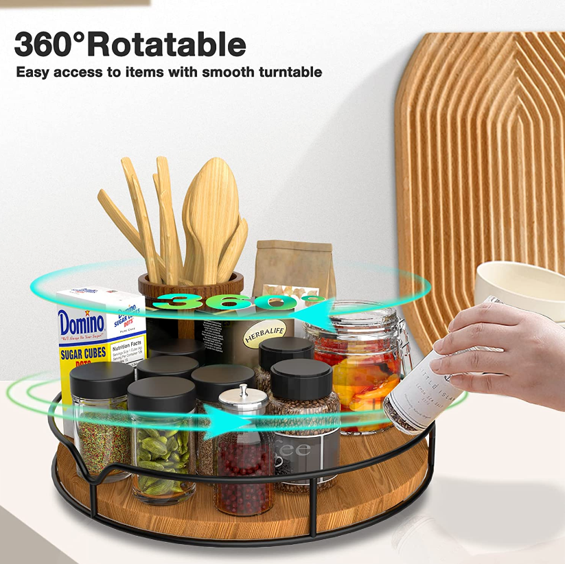 Rather than having to reach over things and knock everything over, you will be able to find just what you need with just a single spinning.