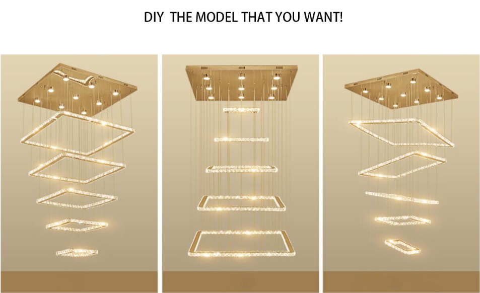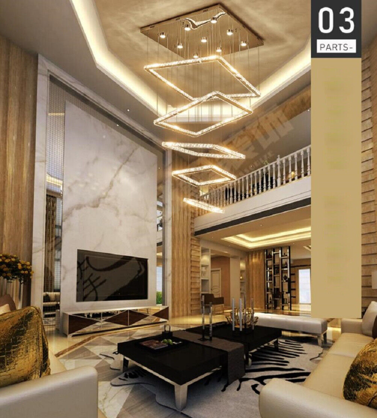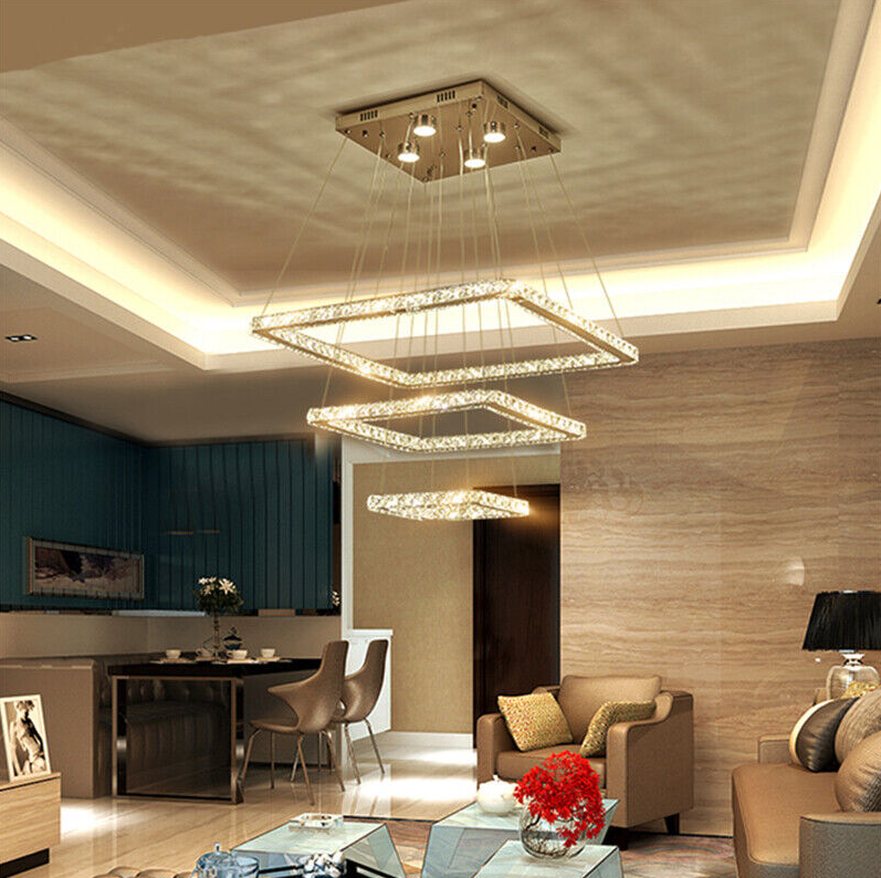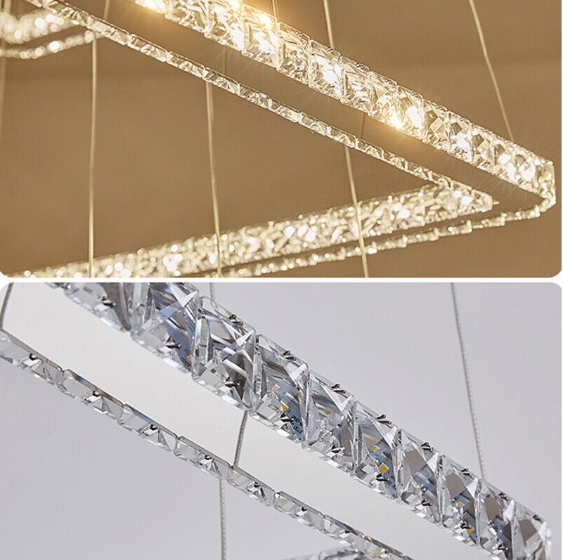 LED Square K9 Crystal Ceiling Fixture Dining Room Pendant Lamp Light Chandelier