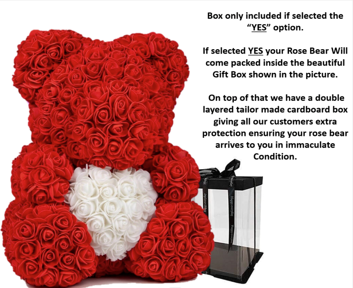 If selected With gift box your Rose Bear Will come packed inside the beautiful Gift Box shown in the picture.