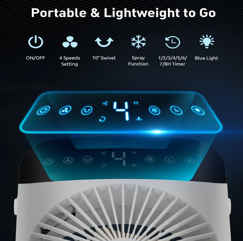 • ❄【Elegant Exquisite Digital Display】All functions are displayed on a digital screen, with backlight indication for each touch button and corresponding icon display for each function;The portable air conditioner is sized only 11*7.3*5.3 inches, great for tight spots and providing unlimited usage possibilities.