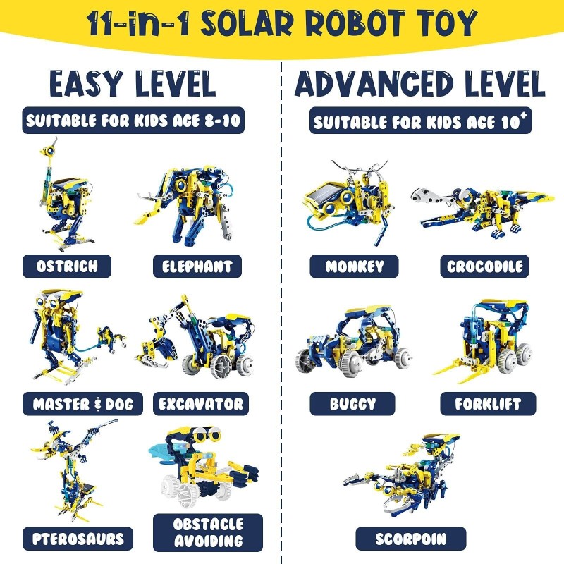 Stem Projects Toy for Kids Ages 8-12, 5 Sets Solar Robot kit Educational Buil...