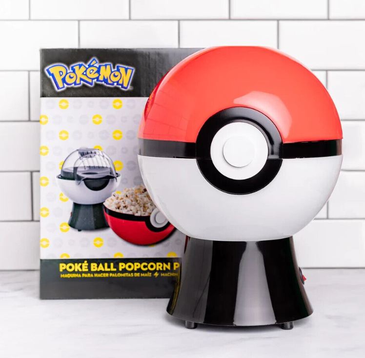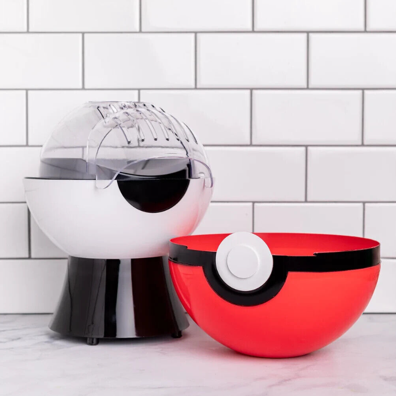 All Pokémon fans will love our Pokéball Popcorn Maker. Our counter-sized version is all about good taste! The top of the Poké Ball turns the popcorn maker top into a bowl as you make fresh popcorn.